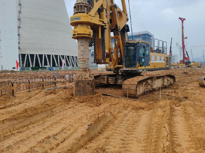 項(xiàng)目采用灌注樁與預(yù)應(yīng)力管樁相結(jié)合的基礎(chǔ)方案,于2024年4月10日開工,2025年5月12日完工。共完成樁徑800毫米及1000毫米的灌注樁216根,樁長(zhǎng)13至28米;預(yù)應(yīng)力管樁(PHC500AB120)230根,總計(jì)3881米。項(xiàng)目成功克服了粉細(xì)砂、粉質(zhì)黏土等復(fù)雜地層帶來的技術(shù)挑戰(zhàn),確保工程質(zhì)量,所完成446根樁基一次性檢驗(yàn)合格率100%,靜載、低應(yīng)變及水平試驗(yàn)結(jié)果全部?jī)?yōu)異,并全面滿足了總包單位的整體進(jìn)度要求。
